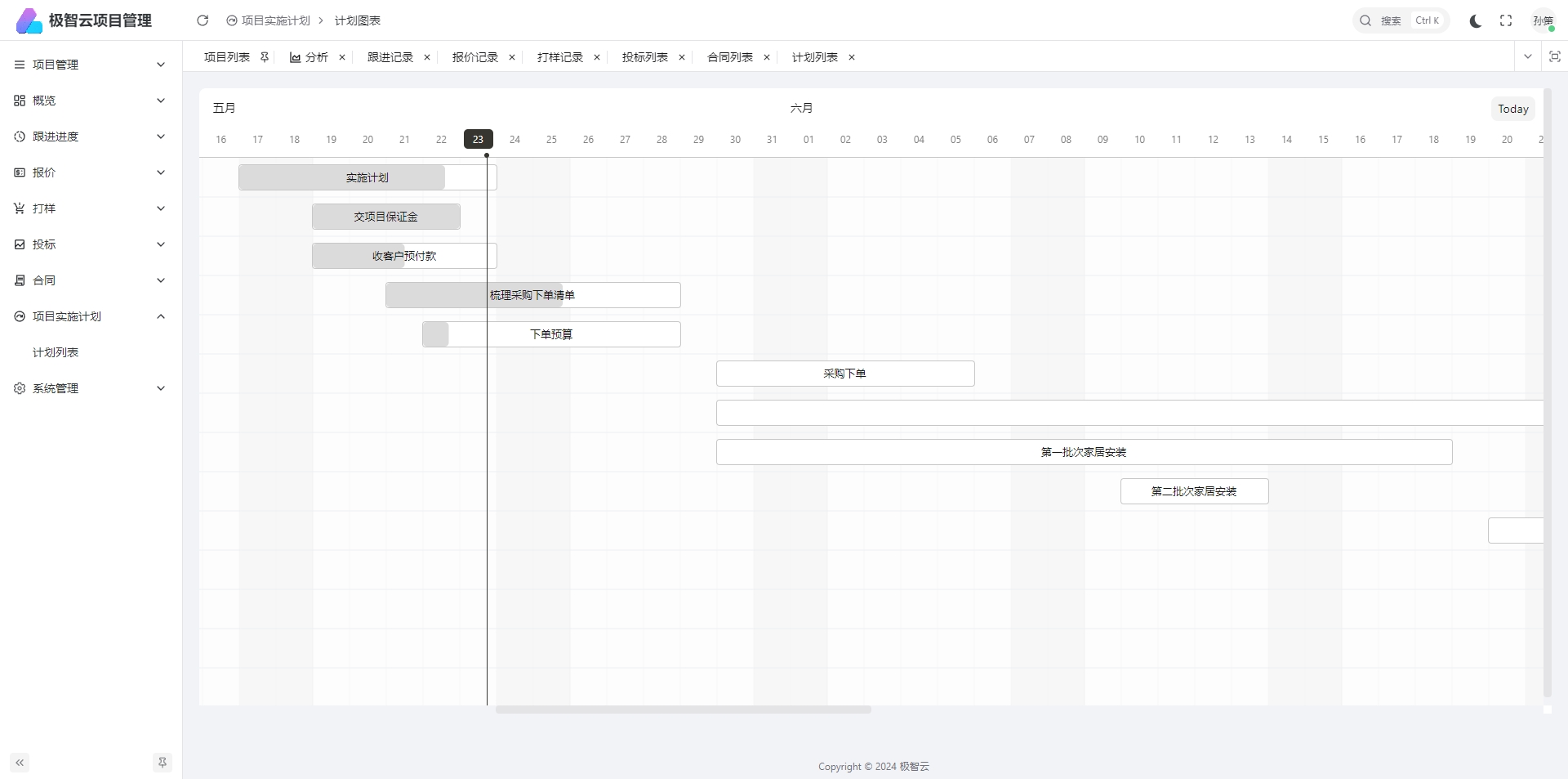 从客户报备,售前跟进,报价,合同。到项目计划,实施,收款,结算。做到项目生命周期全链路数字化智能闭环管理。